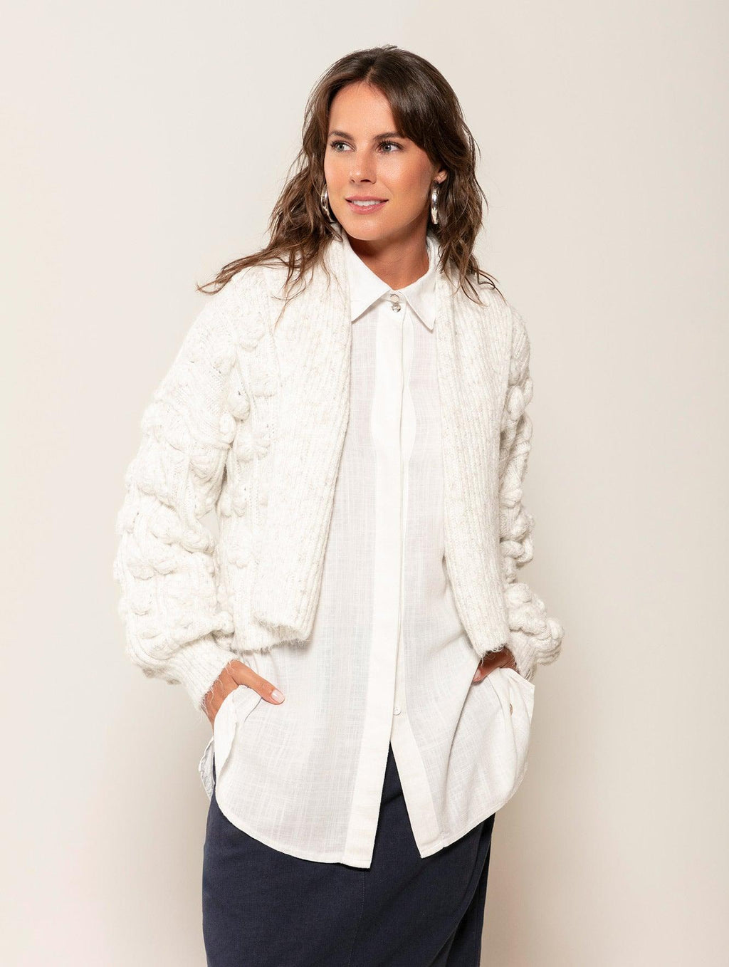 Destaque dos looks invernais, o casaco em ponto laço com mangas bufantes e sem fechamento frontal Biamar 11819 transforma o visual. Mais que uma terceira peça, o modelo atrai todos os olhares, dominando a composição de forma única e moderna, seja pelo seu design inovador ou pela trama em ponto laço, este super delicado, romântico e com efeito volumoso. Descubra o conforto e a elegância da Biamar em cada detalhe desta peça incrível. Não perca a oportunidade de ter uma peça-chave no seu armário.