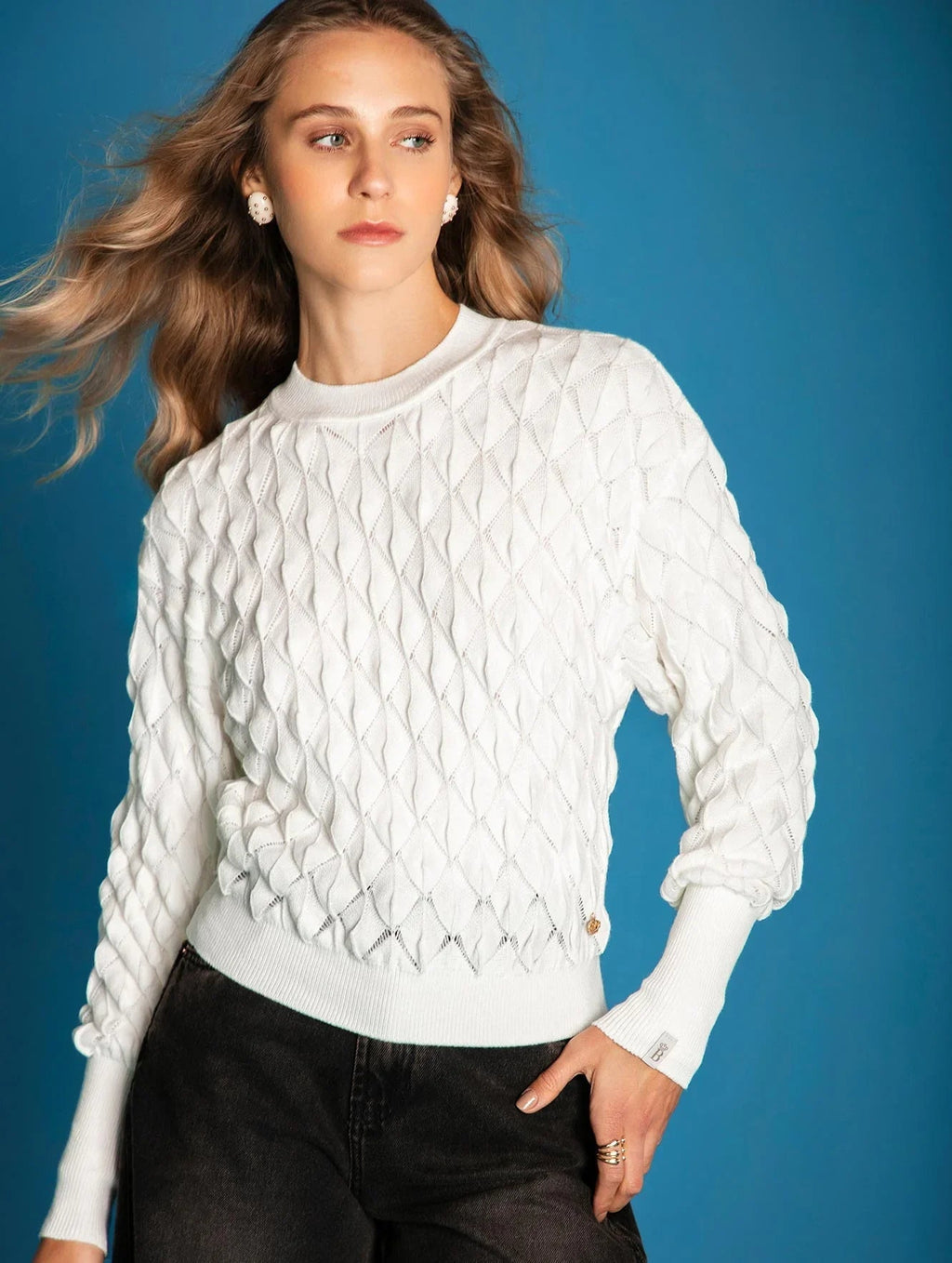 A blusa de ponto losango em relevo com gola redonda da aBenção 11703, transforma os looks da temporada. Com textura de uma ponta a outra, o modelo exibe design moderno, extremamente confortável. É a peça ideal para acrescentar na sua rotina, uma vez que ela combina com diferentes momentos do seu dia. Descubra o conforto e a elegância da aBenção (Grupo Biamar) em cada detalhe desta peça incrível. Não perca a oportunidade de ter uma peça-chave no seu armário.