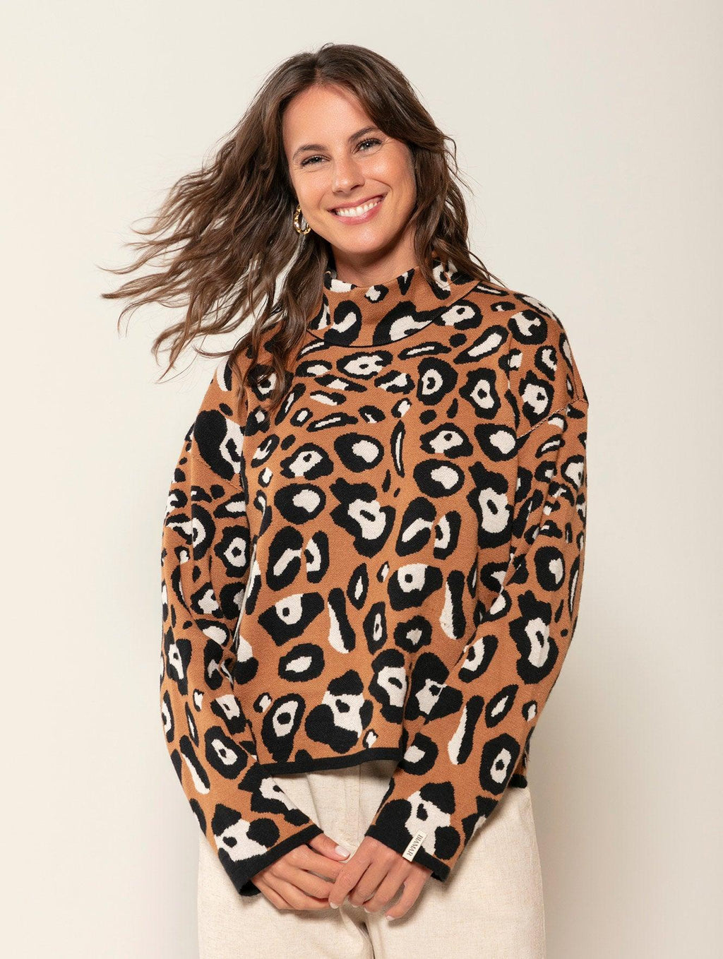 Blusa animal print de gola média e mangas de cava quadrada Biamar