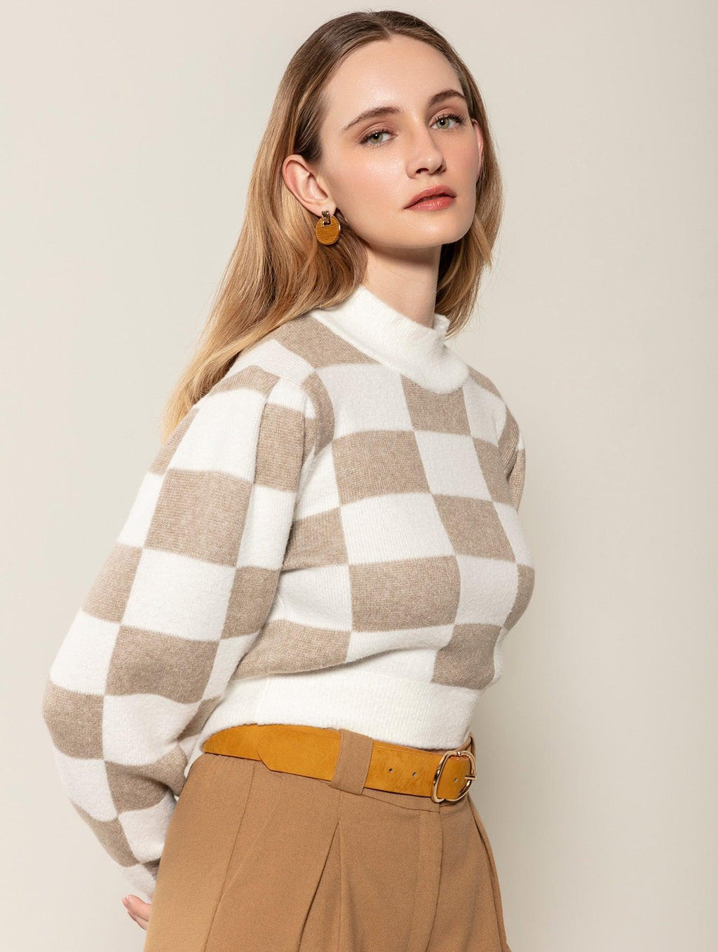 Blusa em padronagem geométrica com gola média e mangas bufantes de cava posta Biamar