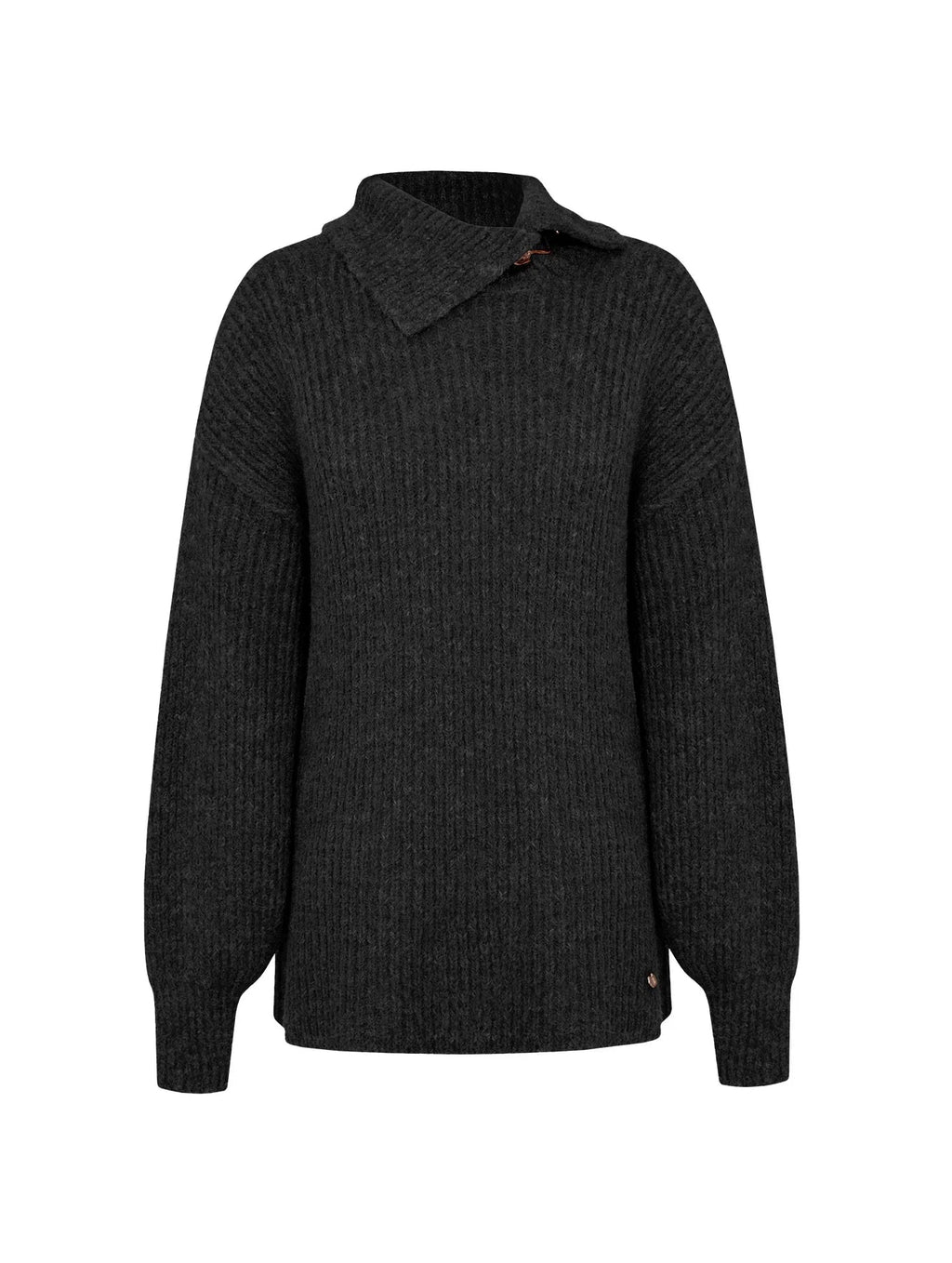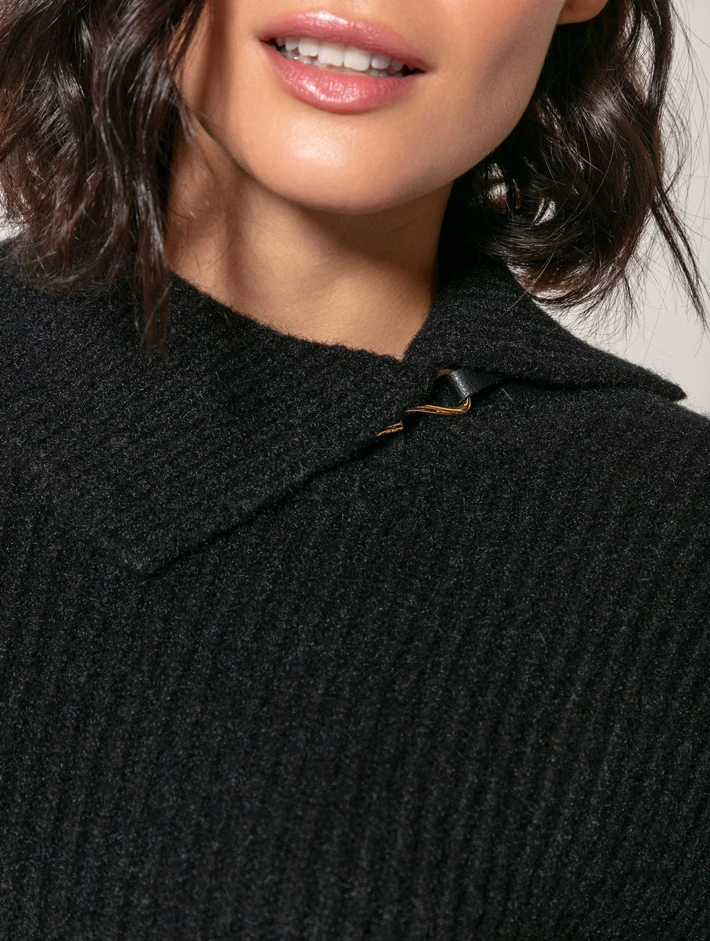 Blusa alongada canelada com gola transpassada e detalhe em alamar Biamar