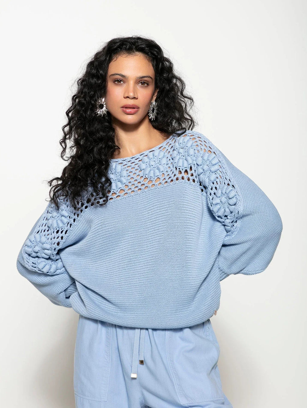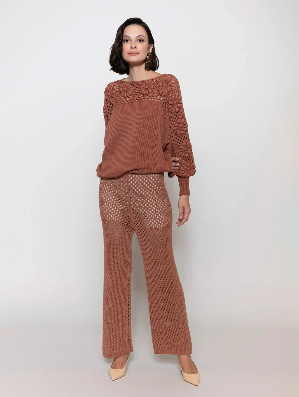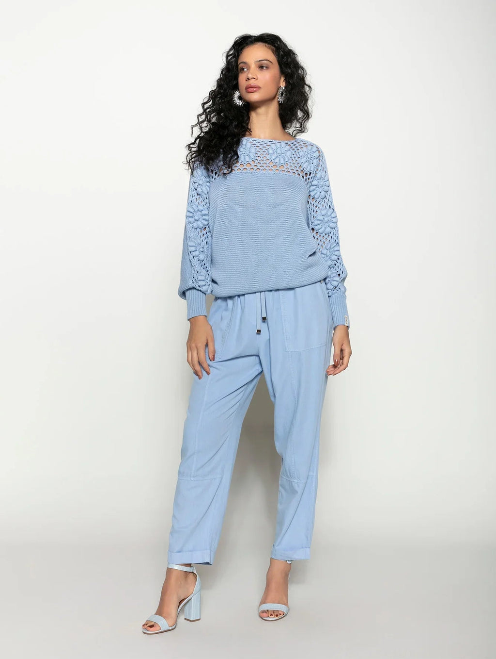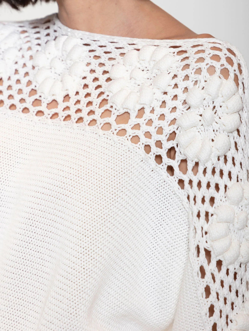 Blusa em algodão em ponto margarida com detalhe vazado e gola canoa Biamar