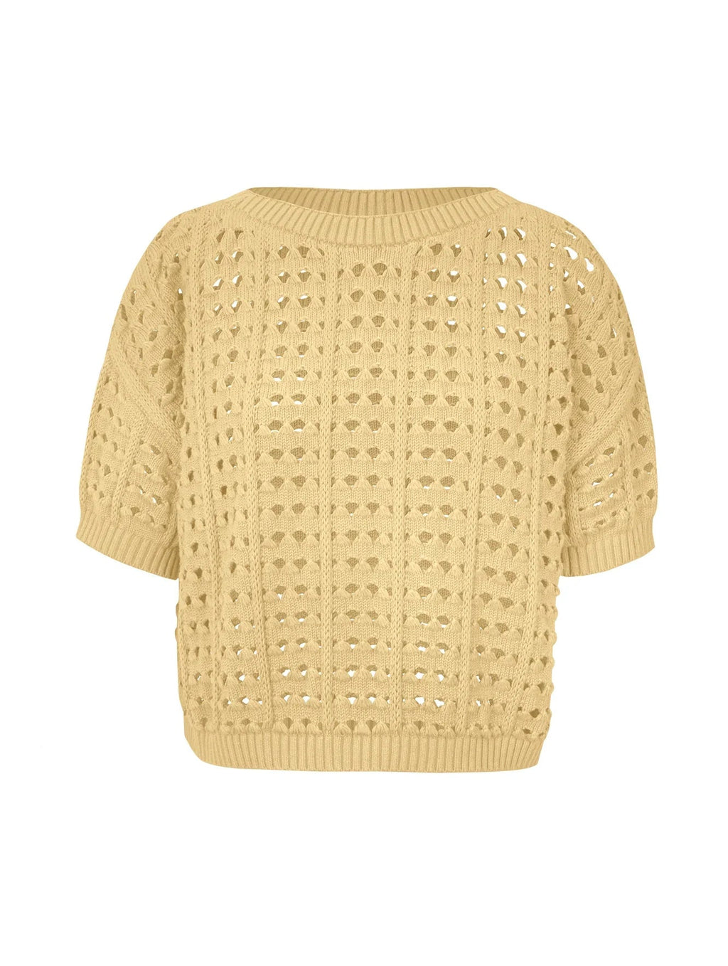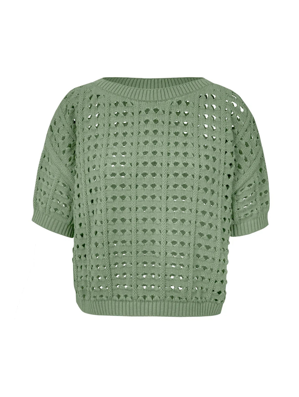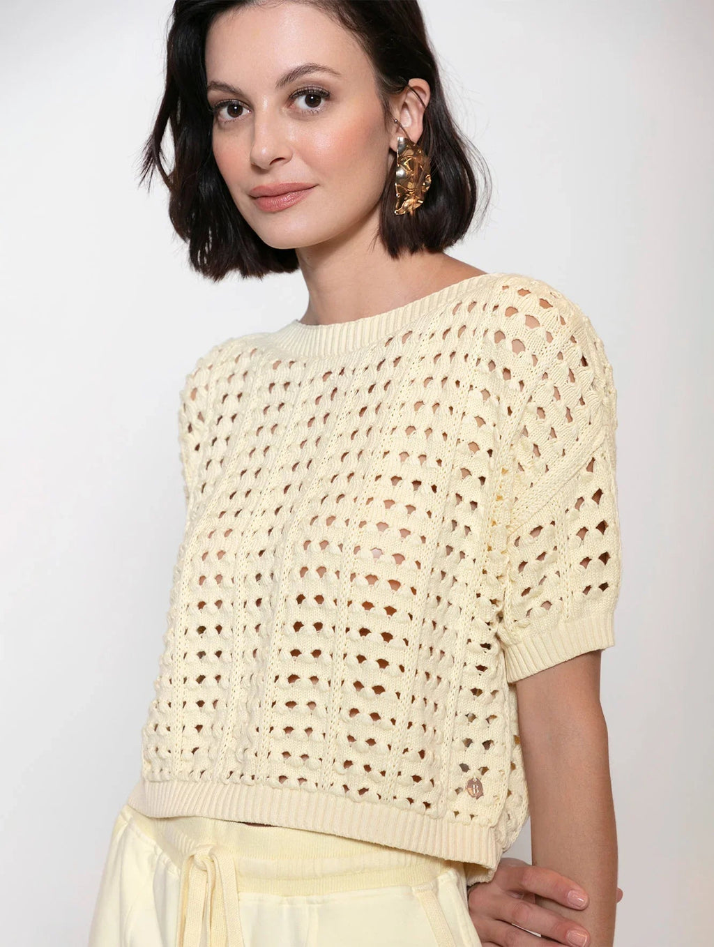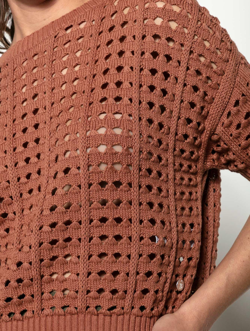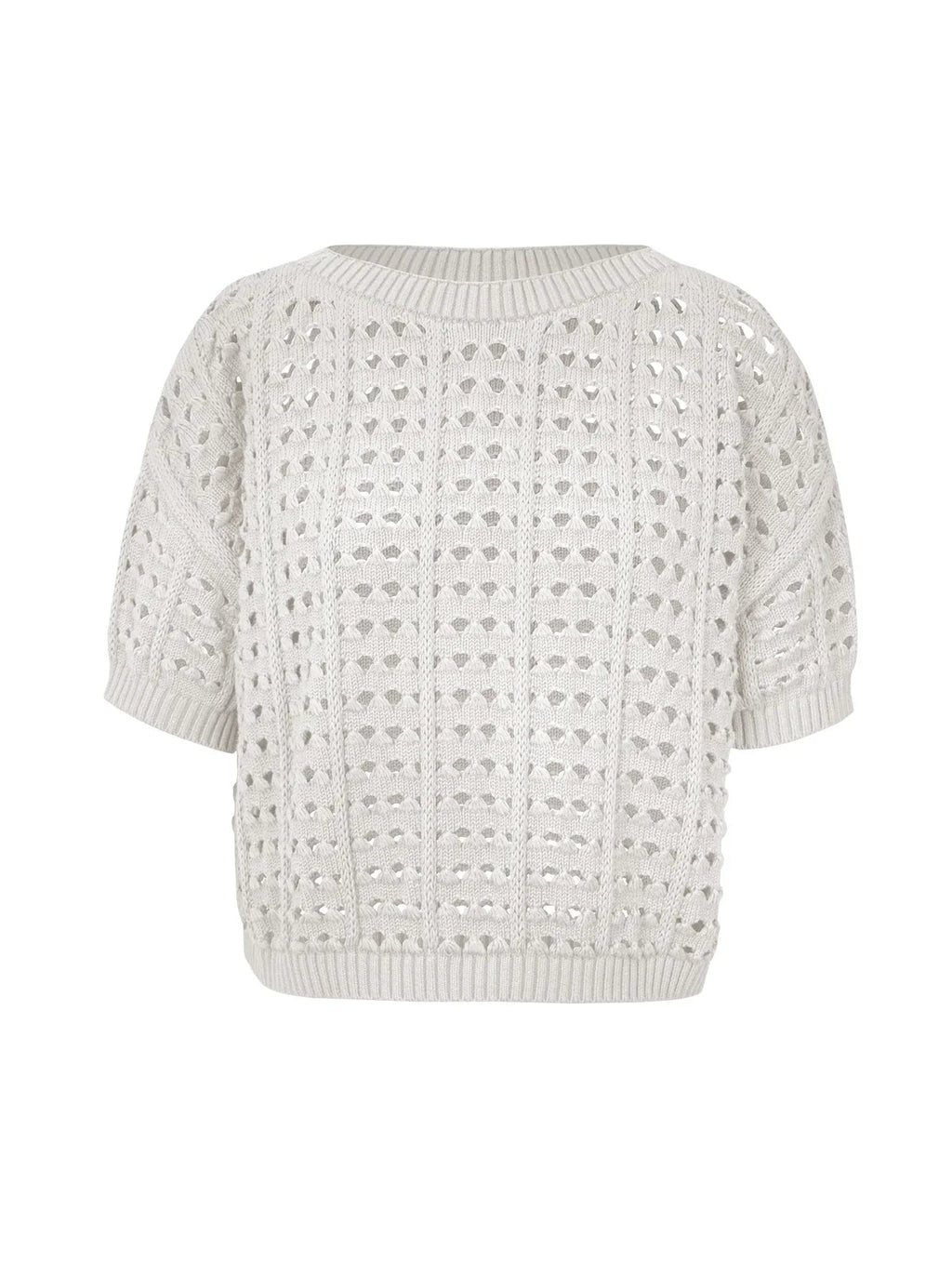 Blusa em algodão com pontos vazados e gola canoa Biamar