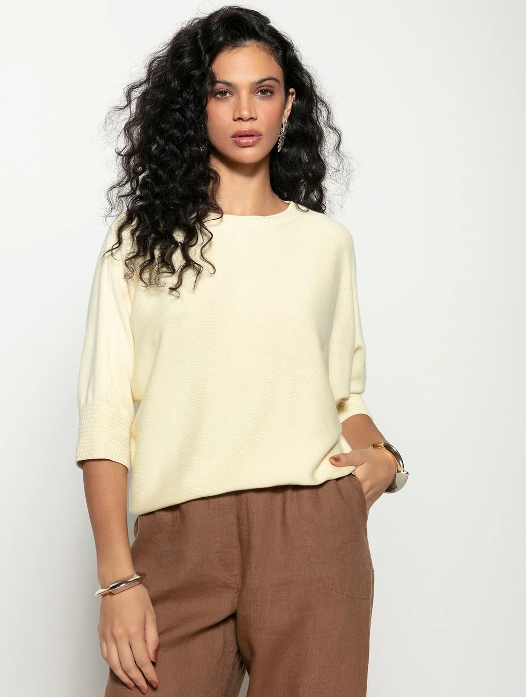 A blusa de algodão com detalhes em ponto pipoca e gola redonda Biamar 11963 encanta à primeira vista. O modelo sem cava, possui mangas de comprimento mais curto e modelagem solta, super confortável. Além disso, a gola e os punhos apresentam tramas em pontos estruturados, criando textura e um efeito delicado. Descubra o conforto e a elegância da Biamar em cada detalhe desta peça incrível. Não perca a oportunidade de ter uma peça-chave no seu armário.