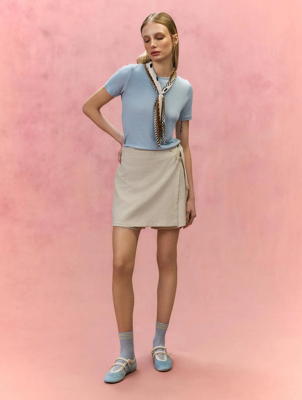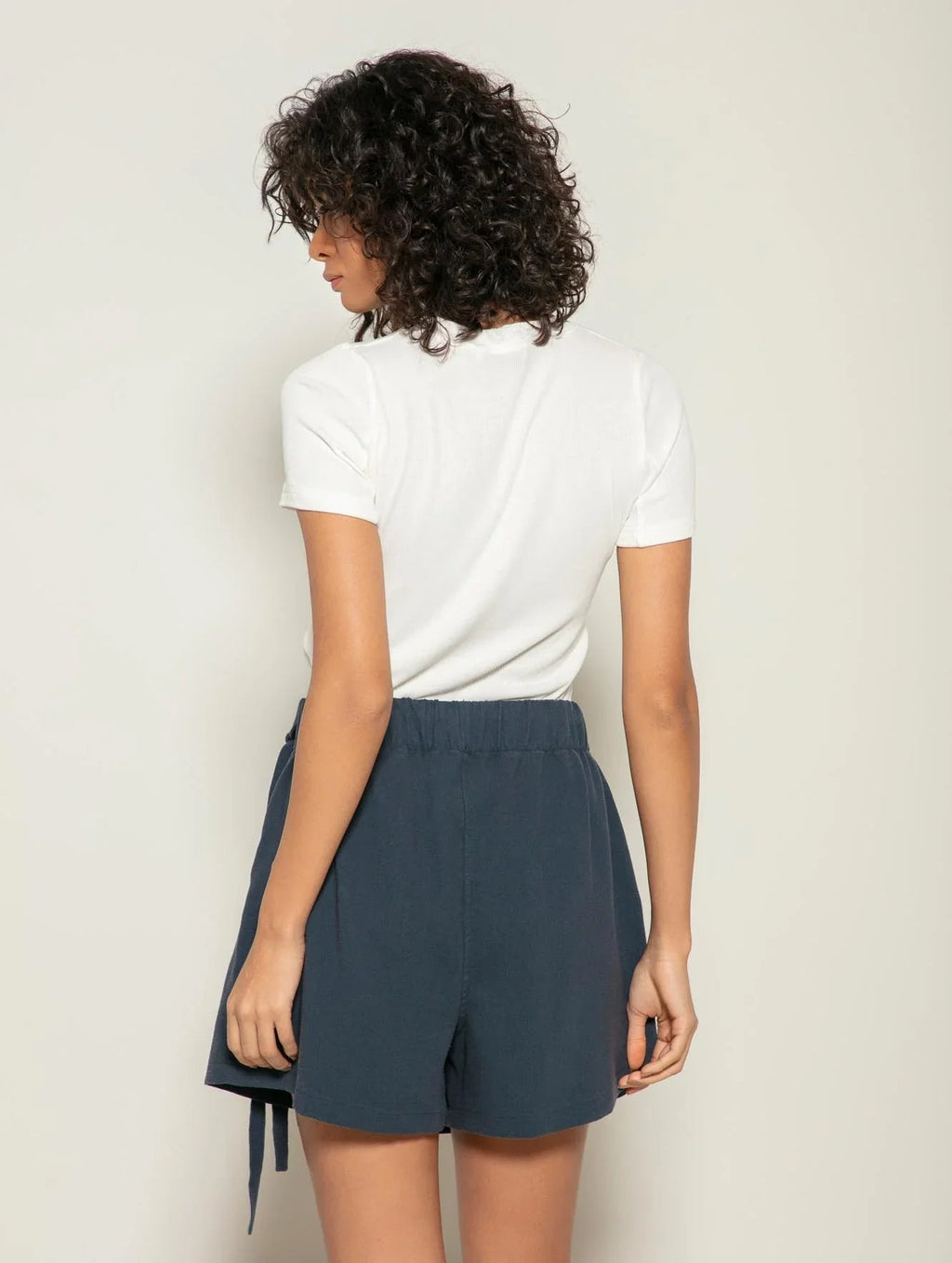 Blusa canelada com decote redondo e mangas curtas Biamar