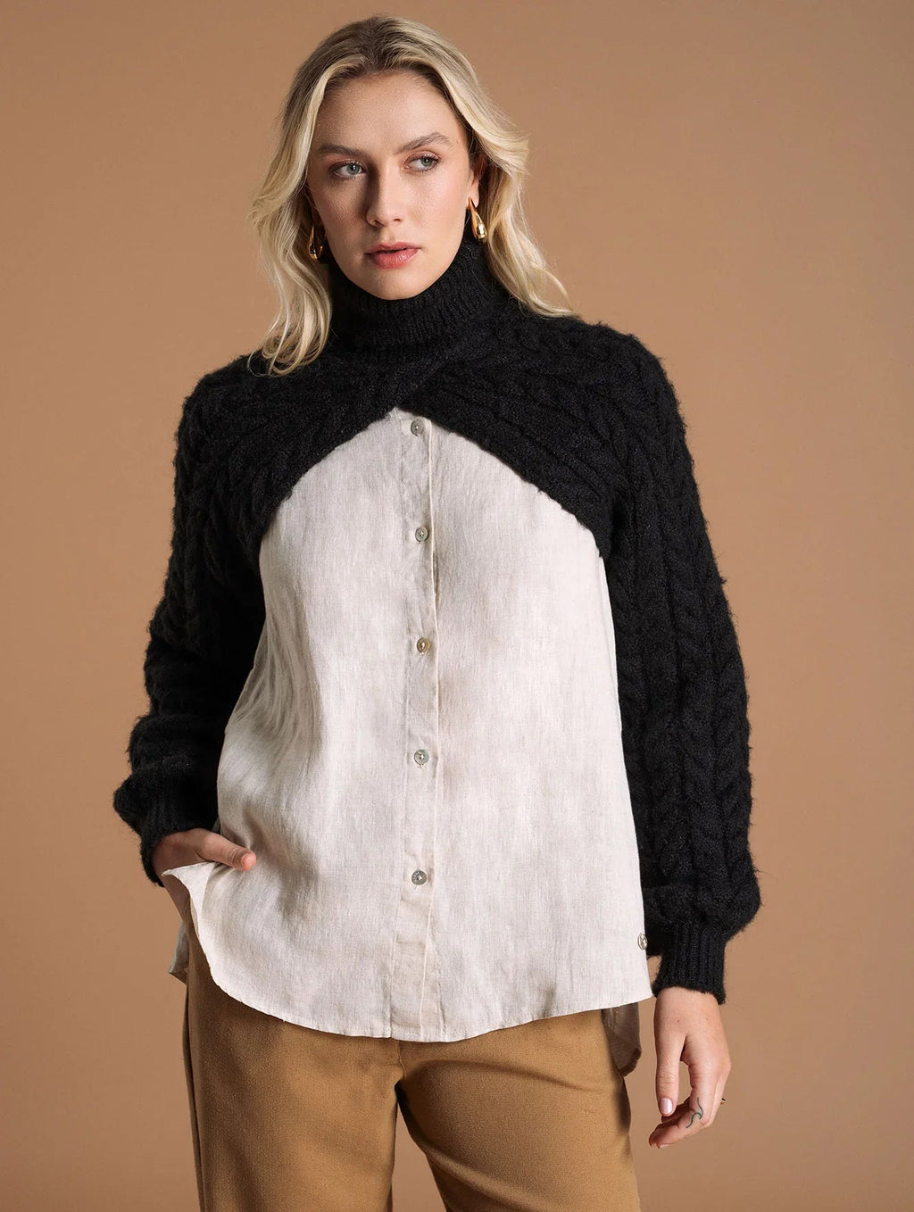 Ideal para destacar as produções, o bolero com tecimento em tranças e gola alta Urbanity 10205 aquece e transforma os looks. O modelo pode ser usado por cima de diferentes peças, como regatas, malhas e vestidos, criando um efeito único e muito moderno. Além disso, o tricô trançado e o acabamento canelado proporcionam um toque de charme e aconchego a mais. Descubra o conforto e a elegância da Urbanity (Grupo Biamar) em cada detalhe desta peça incrível. Não perca a oportunidade de ter uma peça-chave no seu armário.