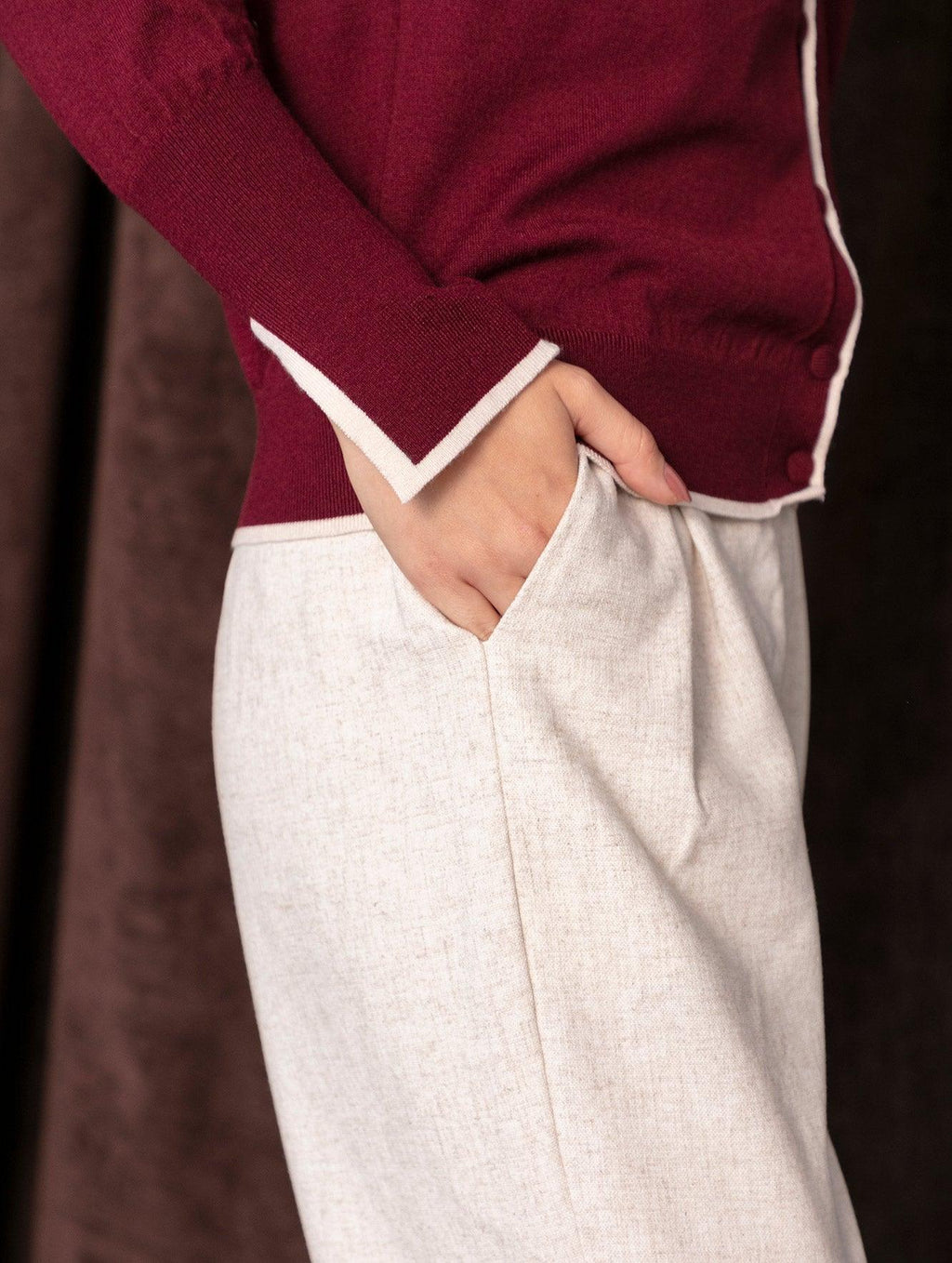 42% viscose, 38% poliéster, 18% linho e 2% outras fibras