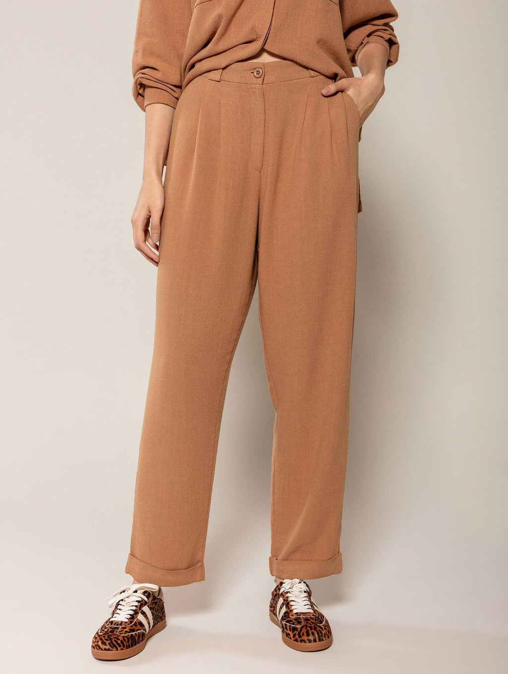 Explore a calça em alfaiataria com bolsos faca, pregas e barra dobrada Biamar 11590. Essencial para o guarda-roupa feminino, é perfeita para compor looks casuais e sofisticados. Feita em linho e viscose, possui passantes para cinto e fechamento em zíper e botão. E mais! O modelo é confortável e elegante, sendo uma peça versátil para diferentes ocasiões entre as estações. Descubra as roupas Biamar que transformam seu visual com praticidade e elegância. Não perca a oportunidade de ter uma peça-chave no seu armário.