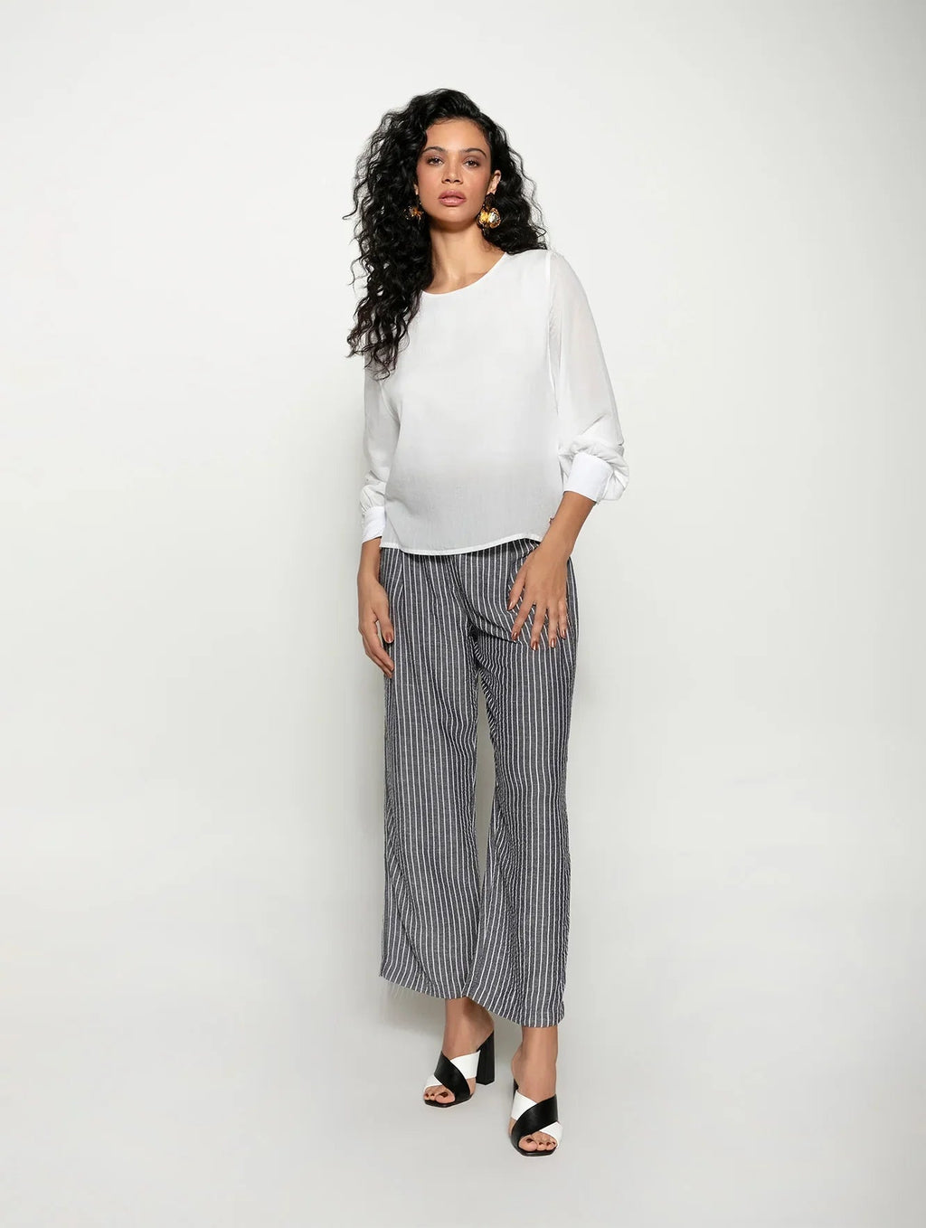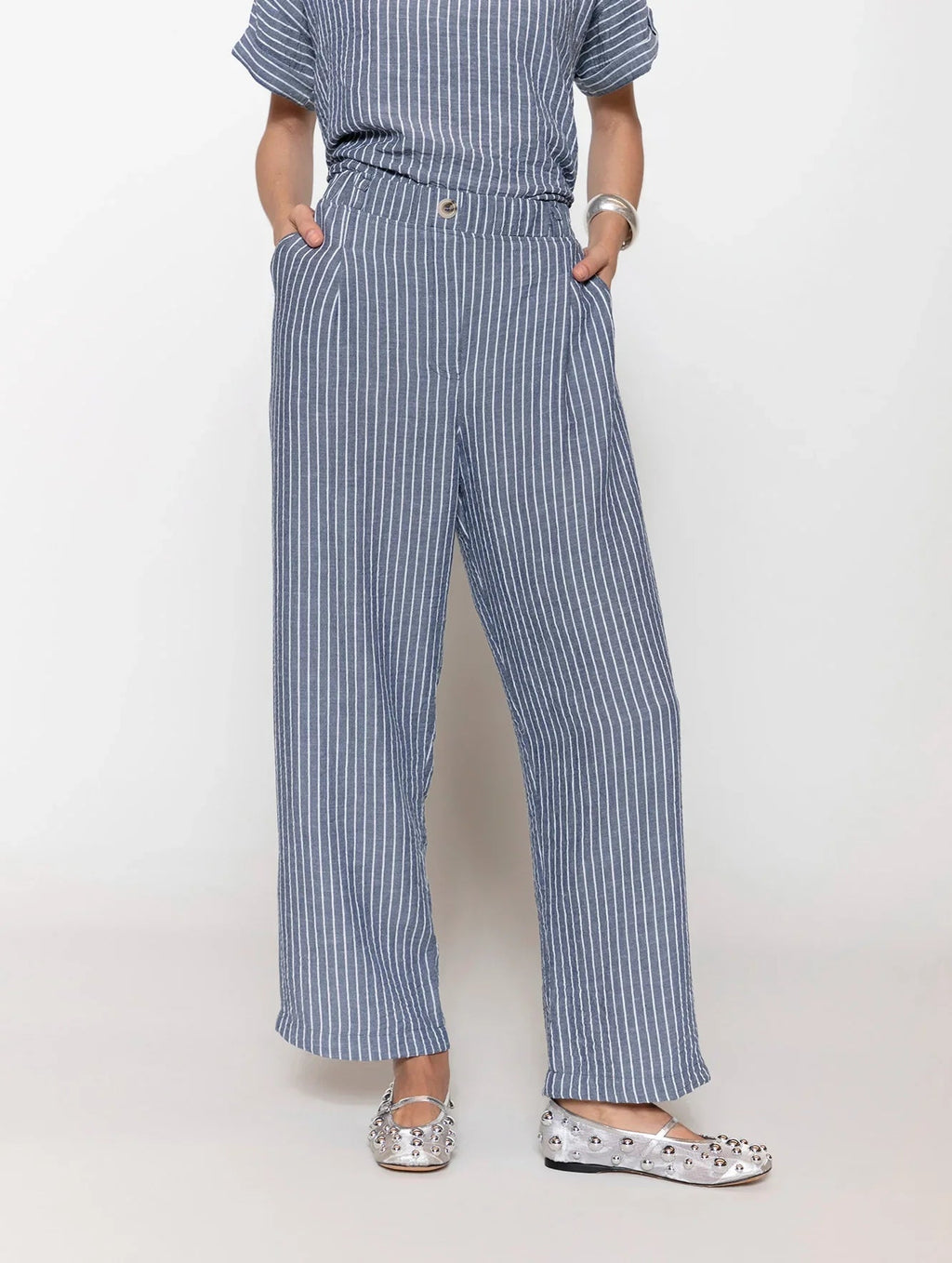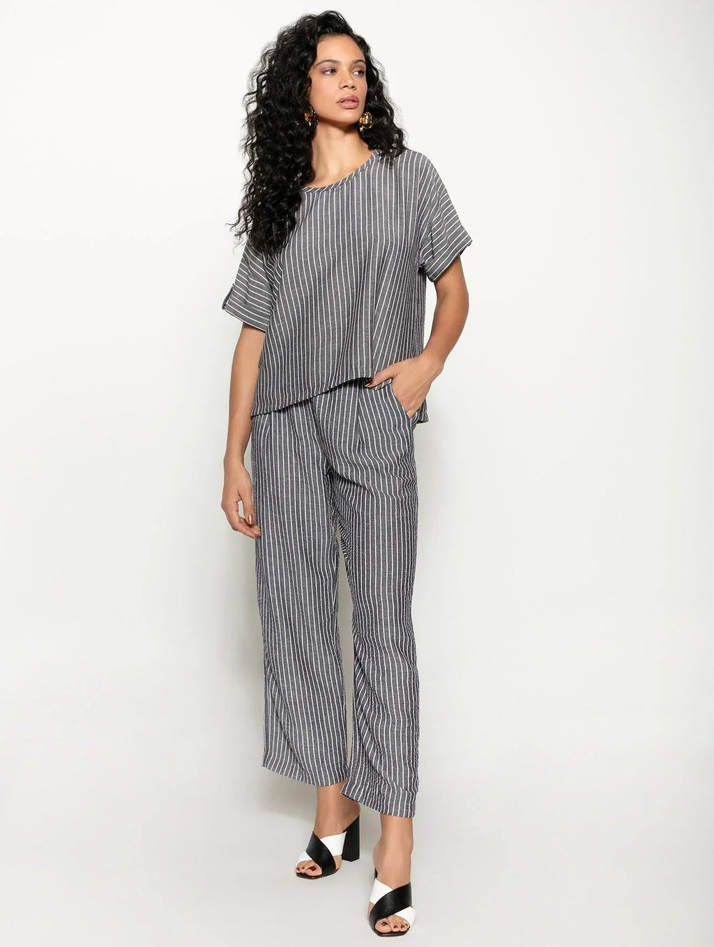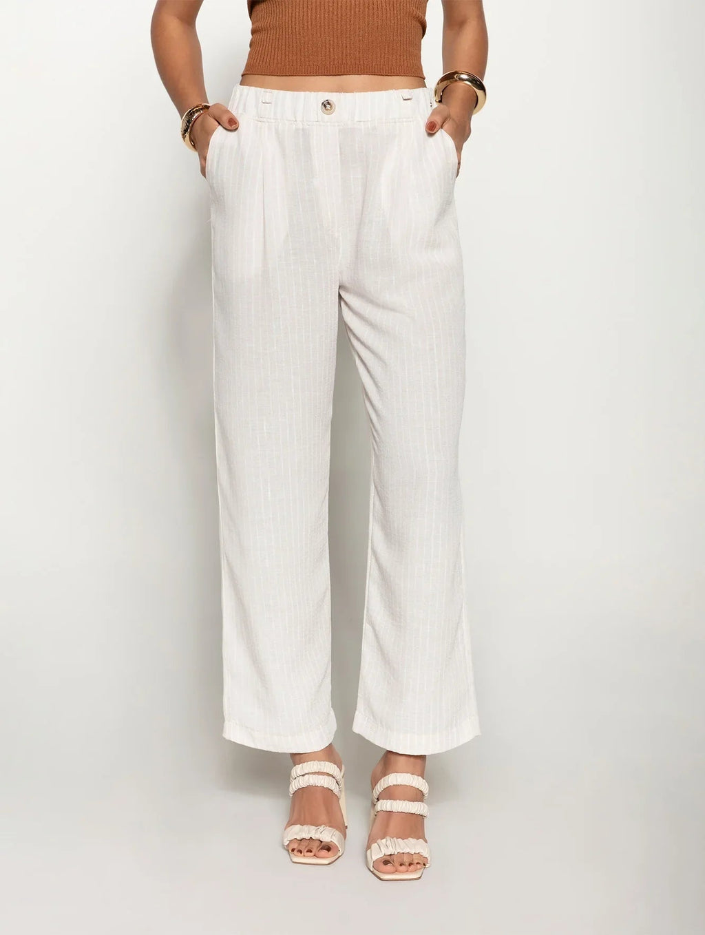 Seus looks ganham destaque quando escolhe a calça reta com padronagem em listras e bolsos faca Biamar 12016. Com design moderno, modelagem fluída e composição leve, combina com produções na meia estação. Na cintura, o modelo exibe elástico para melhor ajuste ao corpo, acompanhado de passantes para cinto e aplicação de botão como enfeite. Descubra o conforto e a elegância da Biamar em cada detalhe desta peça incrível. Não perca a oportunidade de ter uma peça-chave no seu armário.