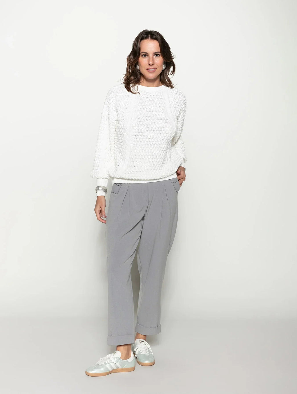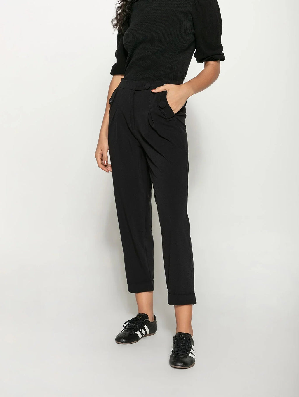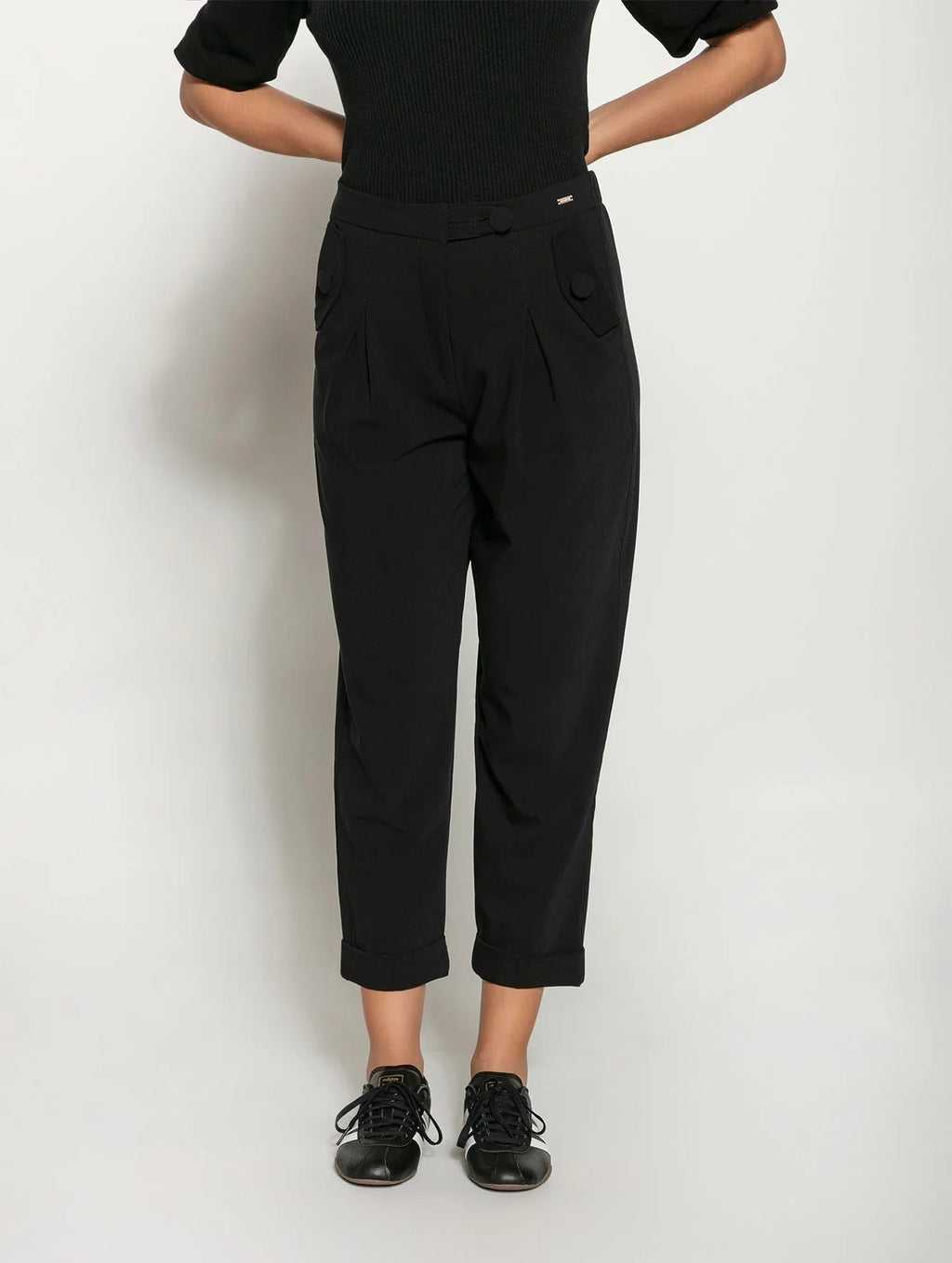 A calça com pregas, bolsos faca, detalhe em botões e barra dobrada Biamar 12037 eleva o visual na primavera e nas demais estações também. Com elástico na cintura e em cores sóbrias e neutras, o modelo adapta-se a diferentes produções, indo do básico ao mais elaborado. O destaque fica a cargo das pregas e botões aplicados que criam volume delicado e um efeito charmoso aos looks. Descubra o conforto e a elegância da Biamar em cada detalhe desta peça incrível. Não perca a oportunidade de ter uma peça-chave no seu armário.