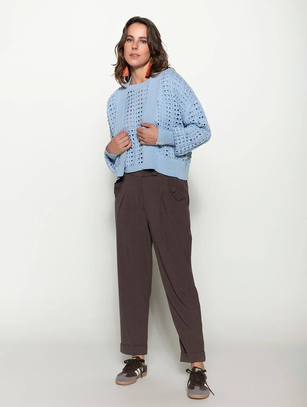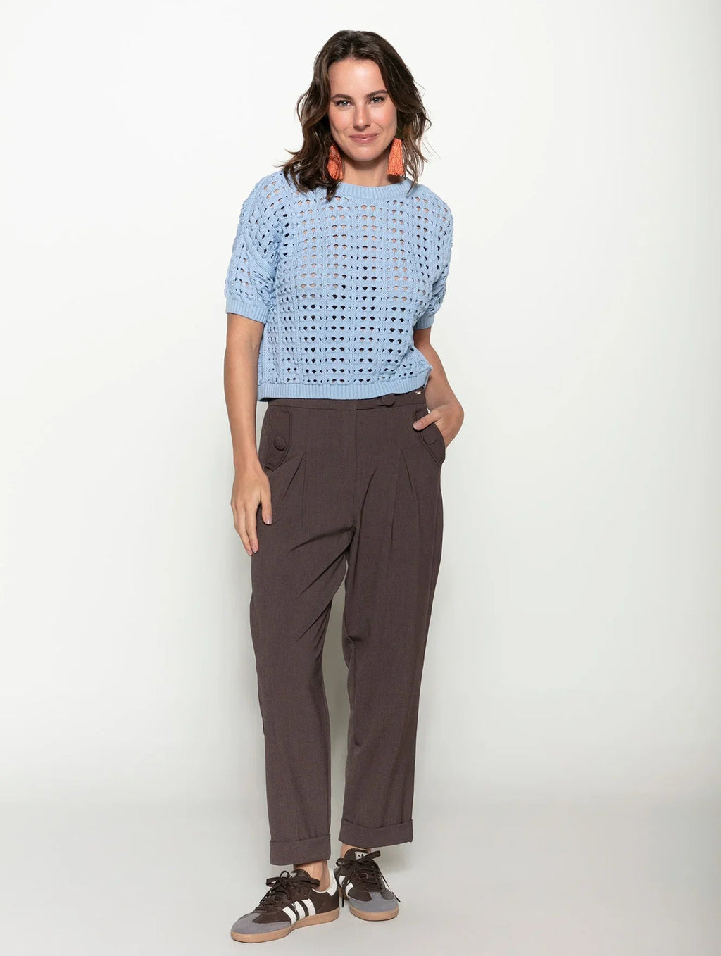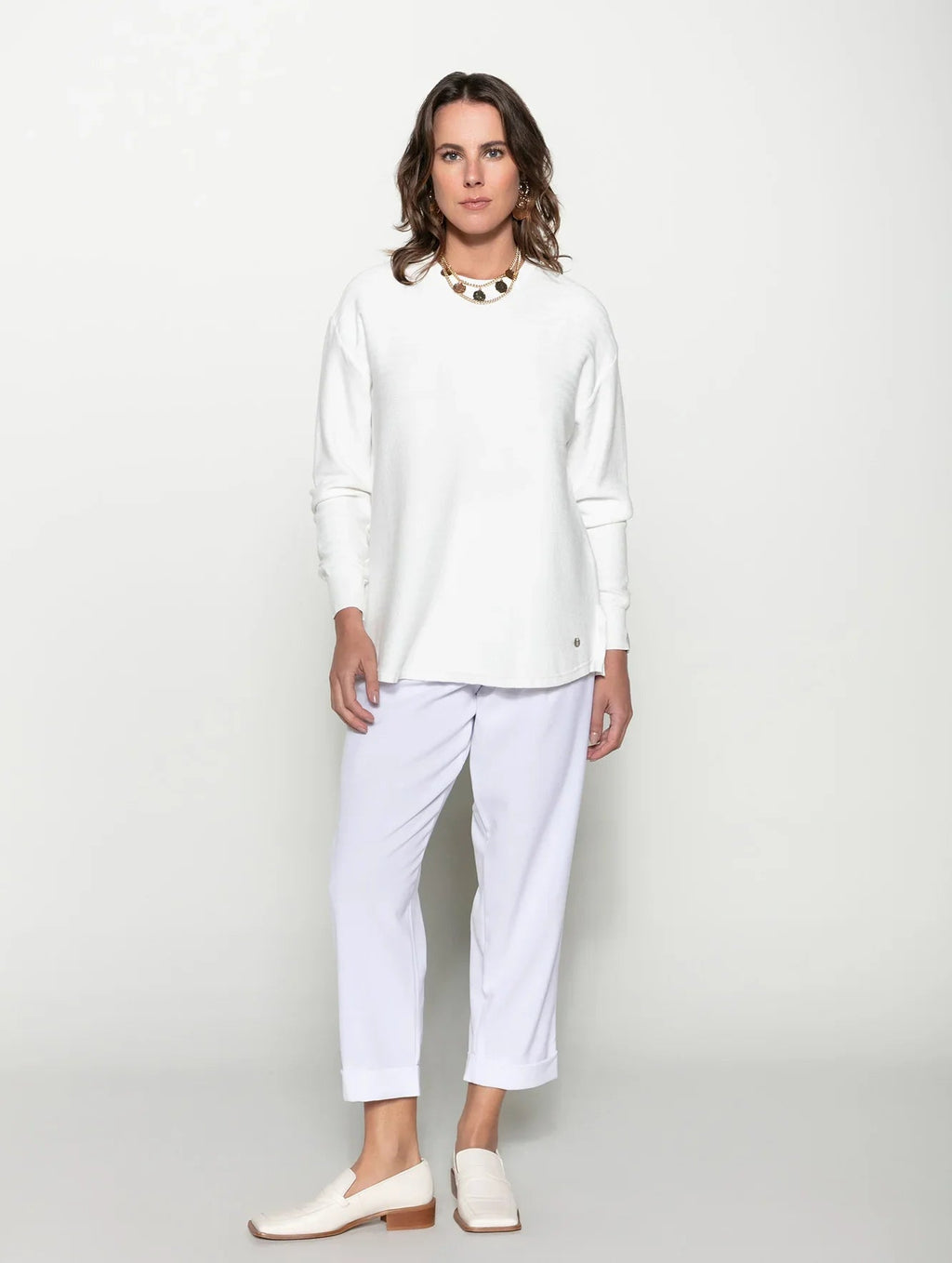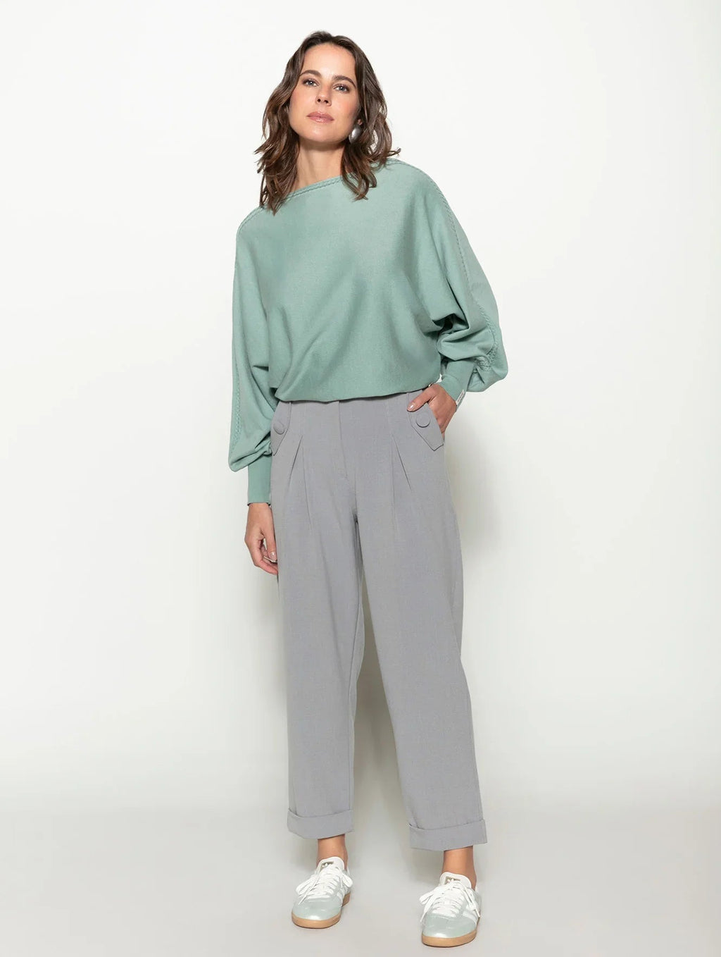 A calça com pregas, bolsos faca, detalhe em botões e barra dobrada Biamar 12037 eleva o visual na primavera e nas demais estações também. Com elástico na cintura e em cores sóbrias e neutras, o modelo adapta-se a diferentes produções, indo do básico ao mais elaborado. O destaque fica a cargo das pregas e botões aplicados que criam volume delicado e um efeito charmoso aos looks. Descubra o conforto e a elegância da Biamar em cada detalhe desta peça incrível. Não perca a oportunidade de ter uma peça-chave no seu armário.