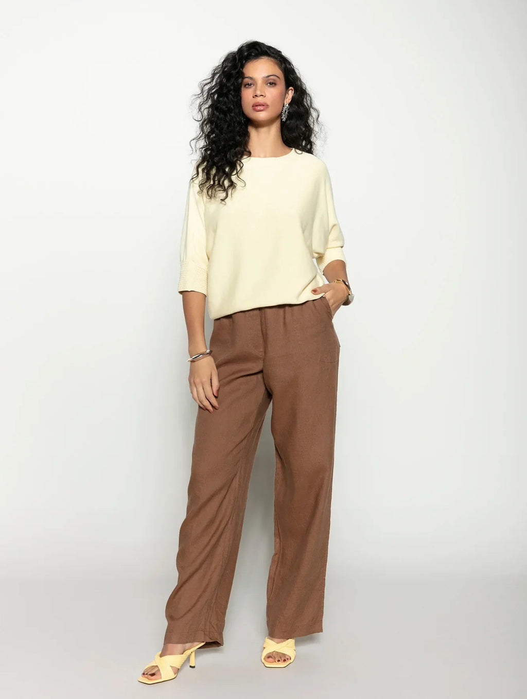 A calça reta em linho com bolsos e elástico Biamar 12065 proporciona um visual sofisticado e moderno. Confeccionada em fibras de alta qualidade que formam um tecido leve e respirável, é ideal para usar durante a primavera e o verão. O modelo conta também com bolsos laterais e traseiros, além de elástico na cintura, garantindo mais conforto e melhor ajuste ao corpo. Descubra o conforto e a elegância da Biamar em cada detalhe desta peça incrível. Não perca a oportunidade de ter uma peça-chave no seu armário.