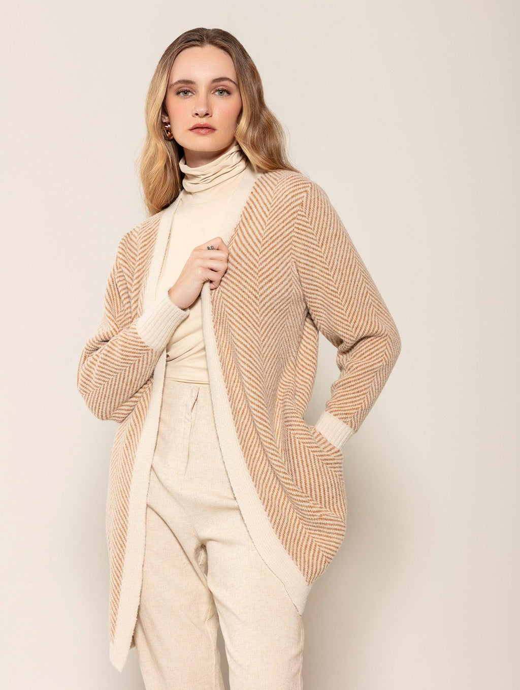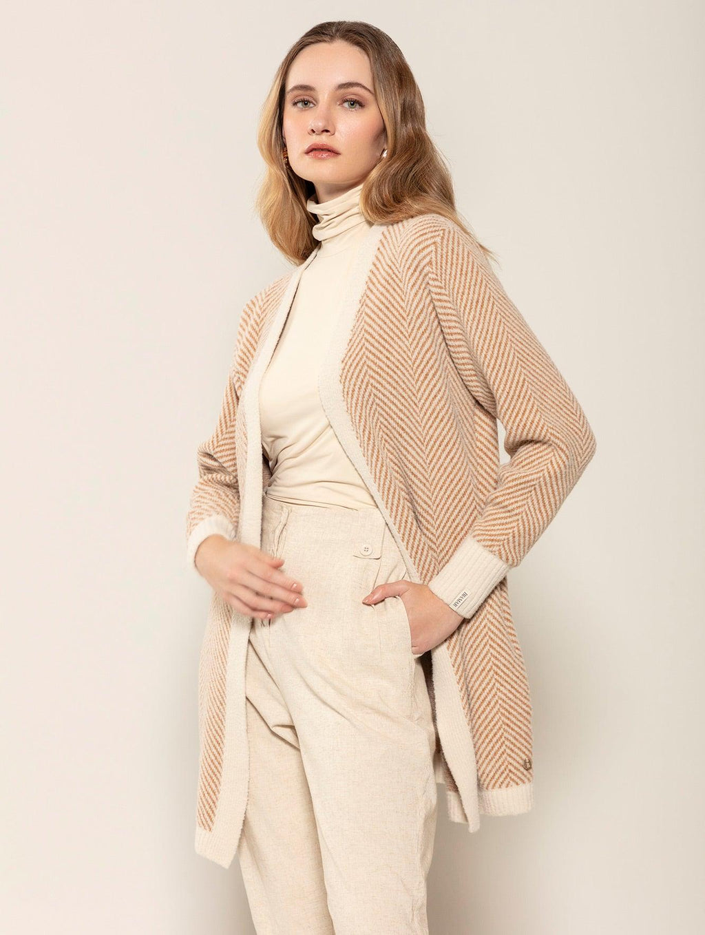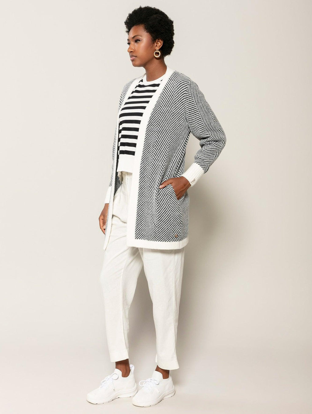 A mescla de cores ganha evidência no casaco alongado com padronagem em listras, bolsos e mangas de cava posta Biamar 11801. Tendência da temporada, o modelo cria a dualidade perfeita entre sofisticação e leveza. Esse contraste dos tons destaca o visual, podendo ser combinado com a blusa de mesma estampa ou com outras peças lisas. Super confortável, dá liberdade para os movimentos do braço e alonga o corpo devido ao seu comprimento maior. Descubra o conforto e a elegância da Biamar em cada detalhe desta peça incrível. Não perca a oportunidade de ter uma peça-chave no seu armário.