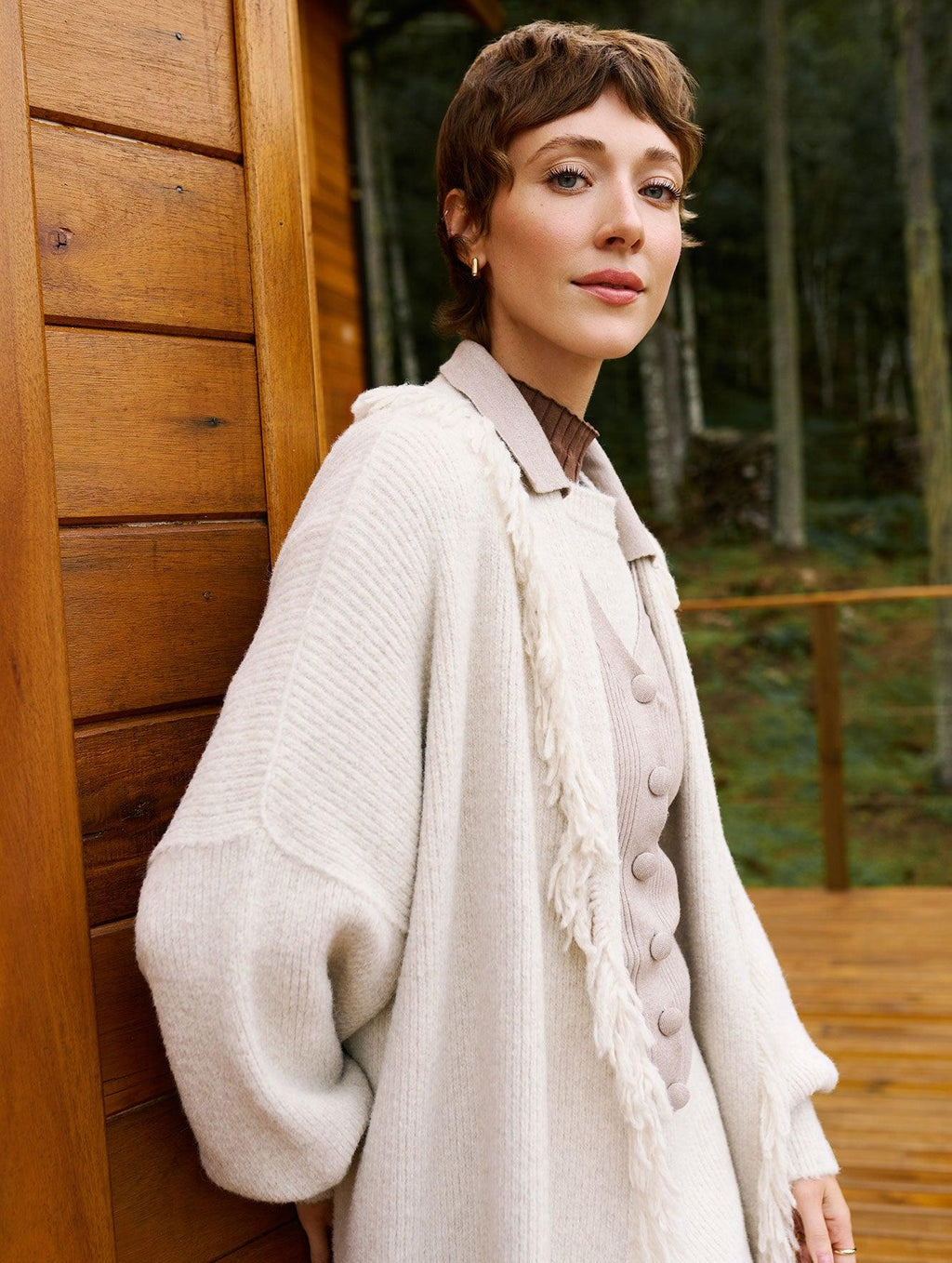 Este casaco alongado transpassado da Biamar 11898 é a escolha perfeita para quem busca estilo e conforto com um toque de modernidade. Feito em tecido canelado, ele traz uma textura única que adiciona sofisticação à peça. O detalhe transpassado valoriza a silhueta, enquanto as franjas na gola proporcionam um charme extra, criando um visual dinâmico e cheio de personalidade. Ideal para os dias mais frios, esse casaco une elegância e conforto, sendo perfeito para diversas ocasiões, do casual ao mais sofisticado. Uma peça essencial para quem adora moda com estilo e um toque único.