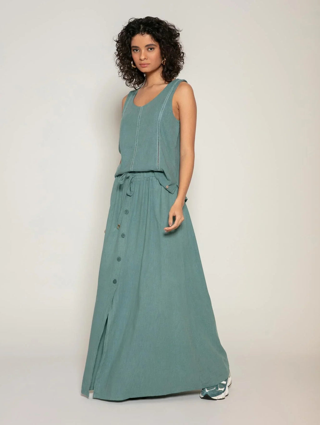 40% algodão, 28% viscose, 20% liocel e 12% linho