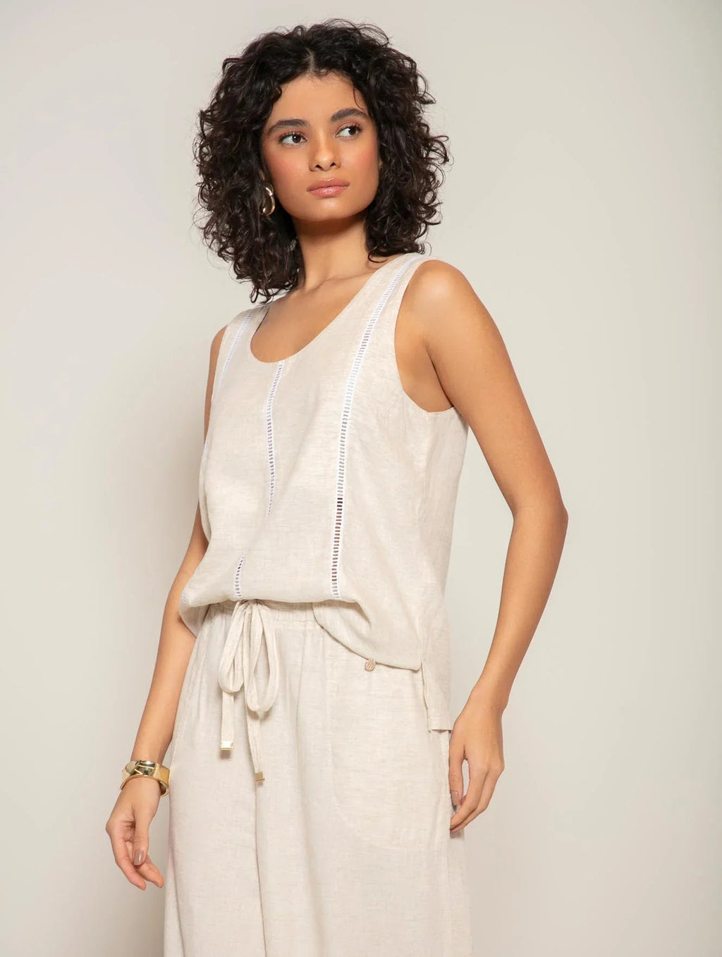 Suas produções jamais serão as mesmas depois de compô-las com a regata em viscolinho com detalhe vazado 12069, sua modelagem clássica entrega todo o conforto e frescor do verão. A peça é detalhada em seu próprio tecido, que possui sutis aberturas, entregando charme e sofisticação. Seu comprimento é perfeito para as mais variadas composições e o decote redondo proporciona maior mobilidade. Descubra o conforto e a elegância da Biamar em cada detalhe desta peça incrível. Não perca a oportunidade de ter uma peça-chave no seu armário.