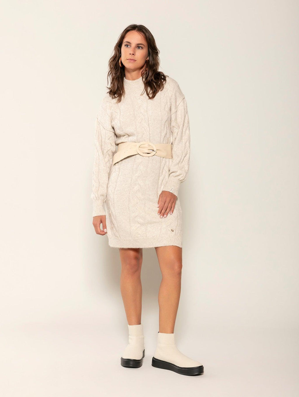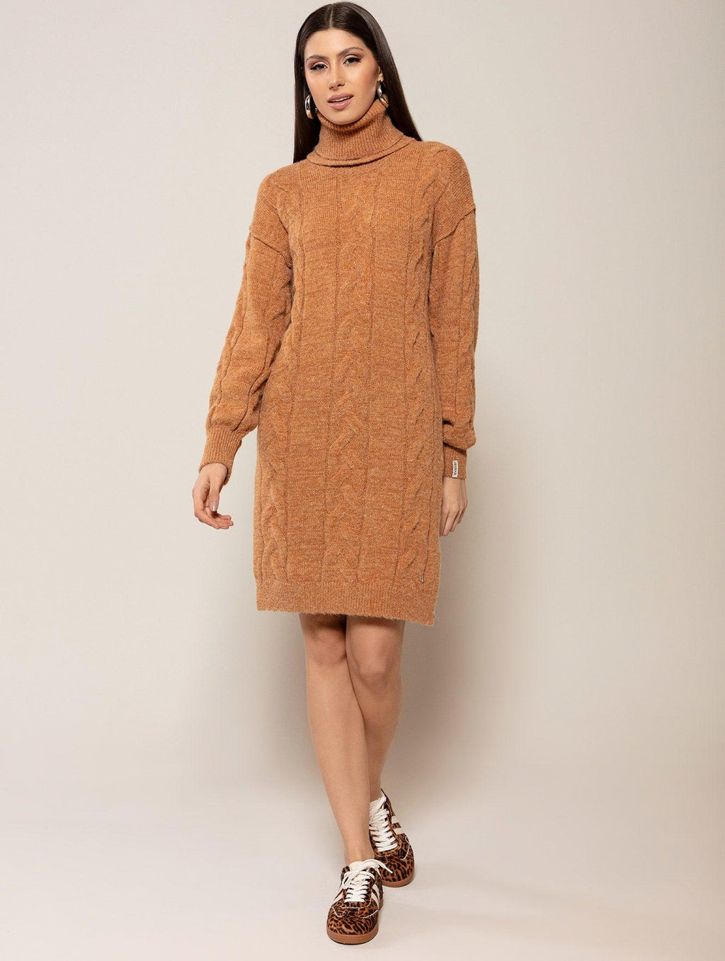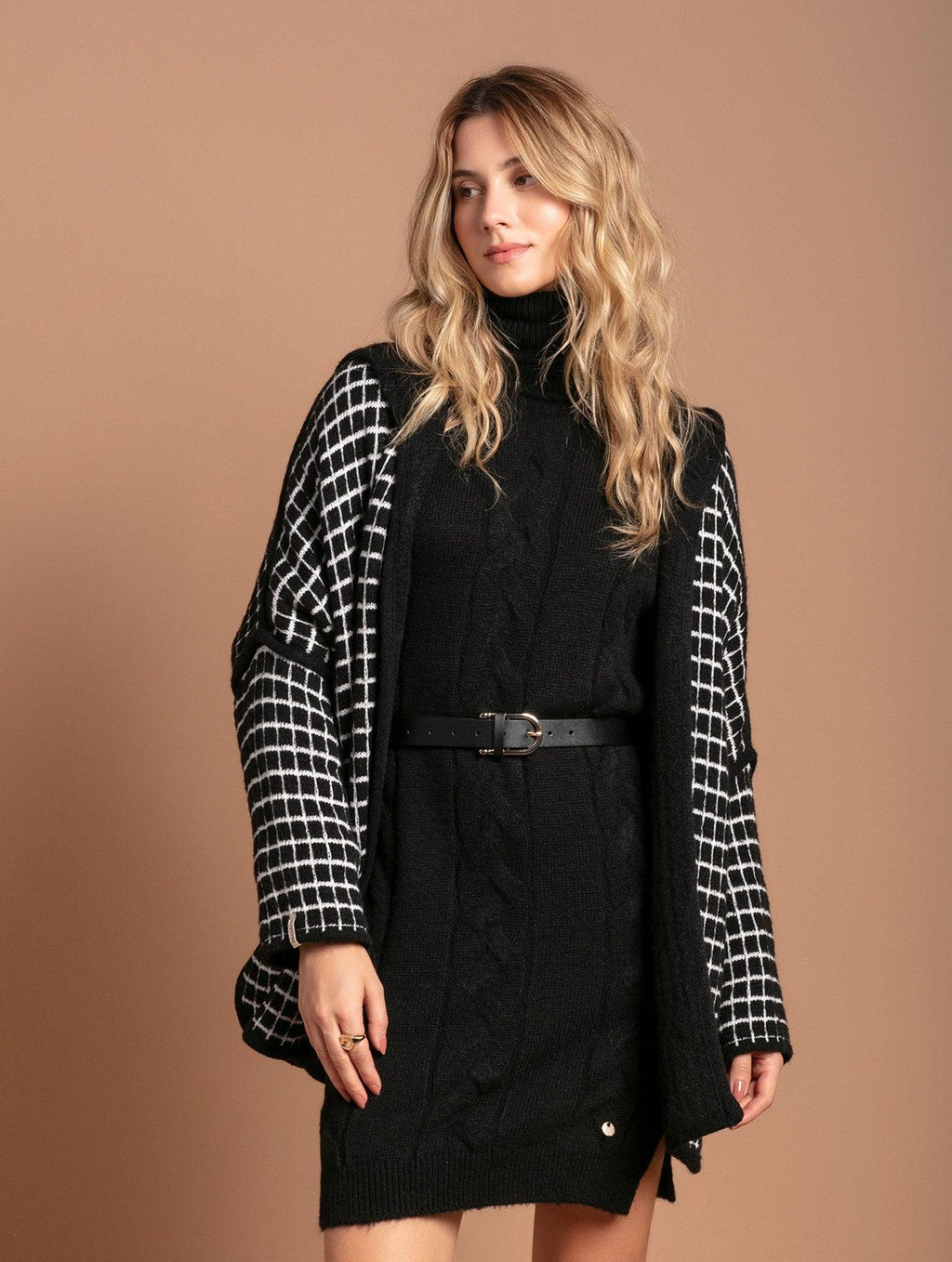 A gola removível do vestido com fenda lateral e mangas de cava quadrada Biamar 11808 permite ter dois vestidos em um. Sinônimo de modernidade e conforto, o modelo abraça o corpo, aquecendo-o e entregando um visual incrível. Além do tricô trançado, o vestido apresenta punhos e barra com acabamento canelado. O mesmo detalhe encontra-se em ambas as golas. Para acrescentar um toque mais contraste, aposte em cintos de espessura maior para dar destaque. Descubra o conforto e a elegância da Biamar em cada detalhe desta peça incrível. Não perca a oportunidade de ter uma peça-chave no seu armário.