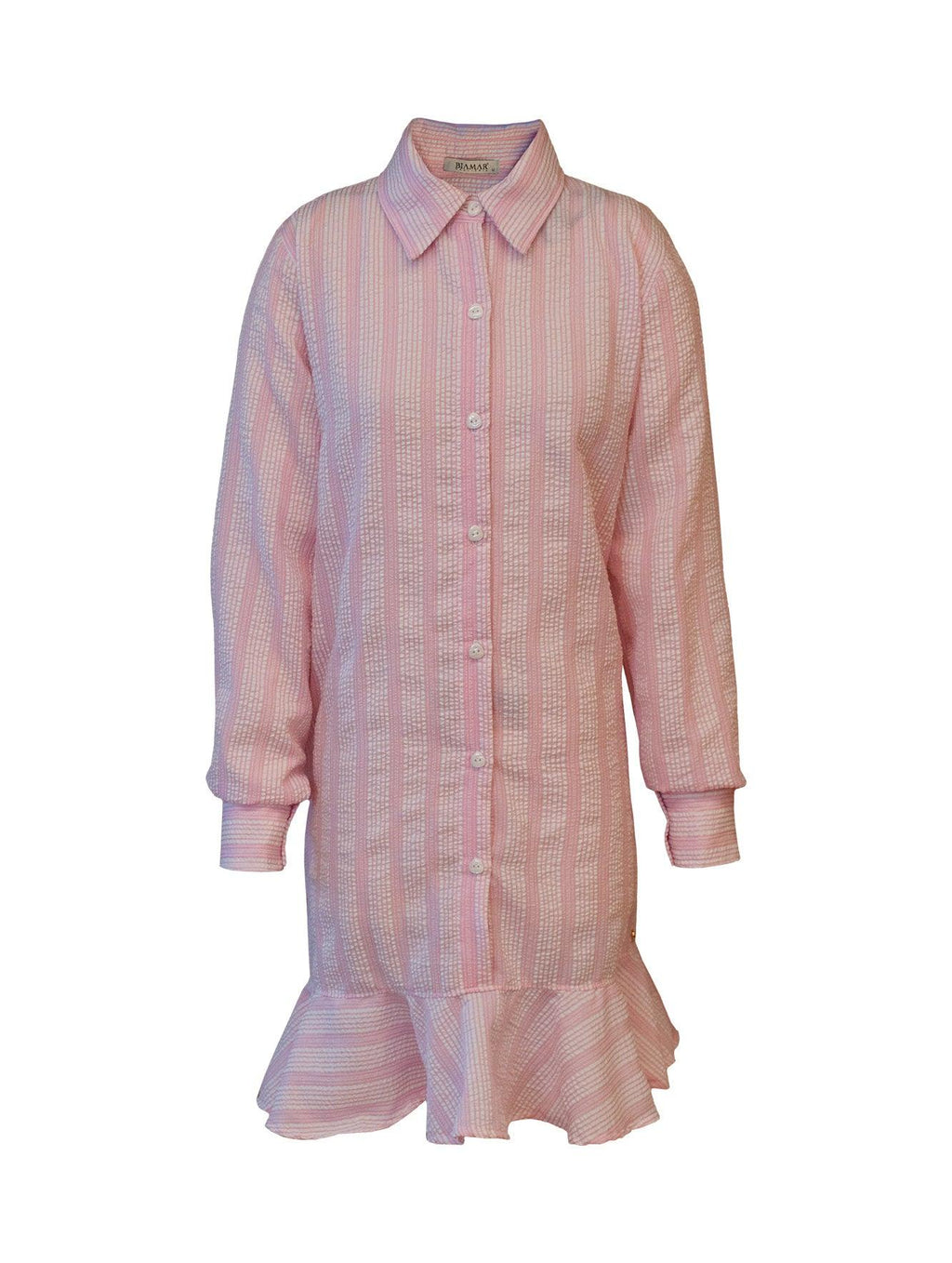 O vestido com padronagem em listras, botões e babados Urbanity 10881 exibe mangas longas de cava posta com punhos marcados. Seu fechamento em botões vai de uma ponta a outra da peça, sendo a barra em babados, conferindo visual delicado e charmoso. Além disso, possui cores encantadoras e românticas. Descubra o conforto e a elegância da Biamar em cada detalhe desta peça incrível. Não perca a oportunidade de ter uma peça-chave no seu armário.